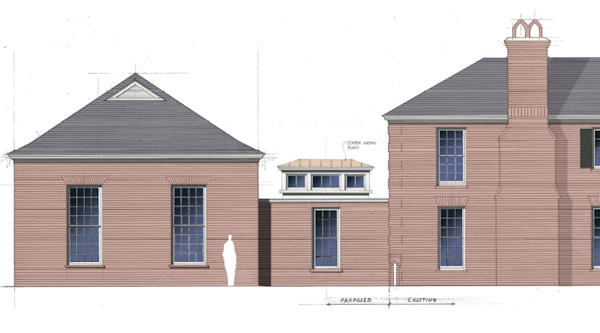 The Arts Council has engaged Liberatos Architects, a traditional architecture firm that specializes in designing additions to historic buildings. This addition’s main feature is a large art gallery with space to display larger works of art, room to gather more people, and a separate meeting room. The plan also includes a small art gallery, two ADA public restrooms, and two elevators for access to the 2nd floor spaces & basement for storage.